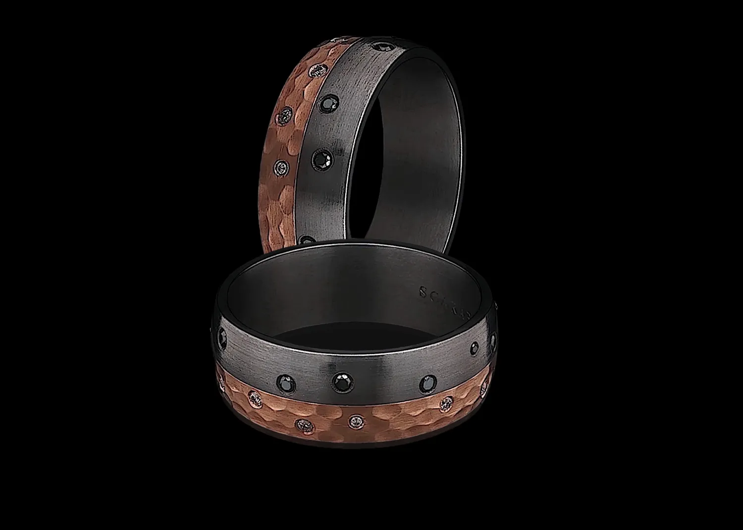 This gents ring is made of tantalum and planished 9ct rose gold.