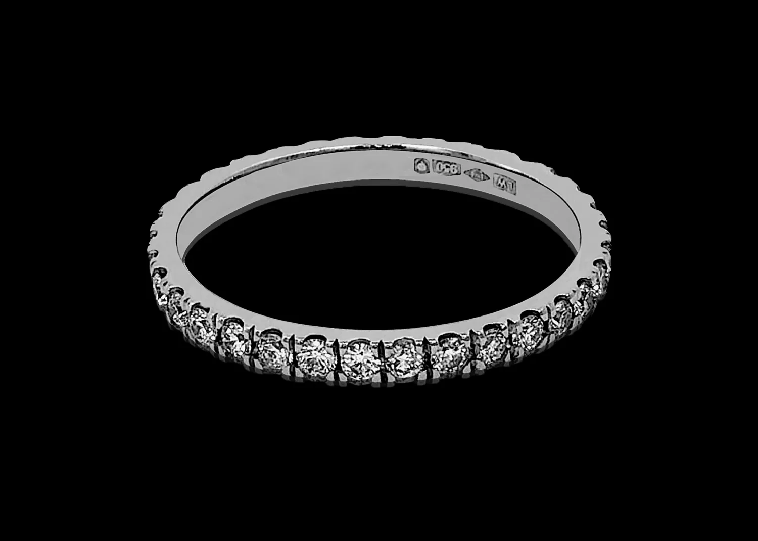The platinum full eternity ring is set with thirty-two round diamonds with a total estimated weight of 0.64ct.